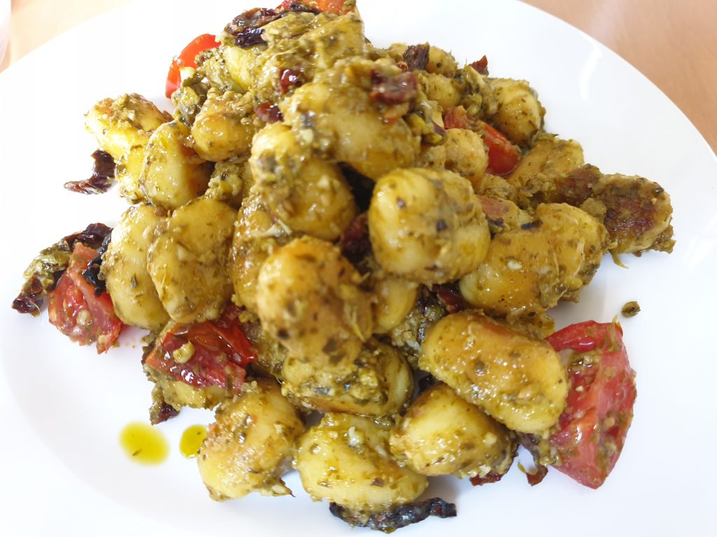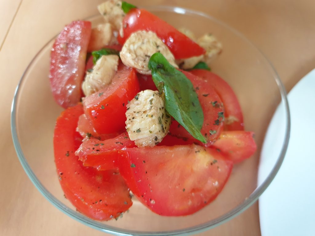 Heute bin ich mal relativ früh aus der Arbeit gekommen, 16:45. So hatte ich in Ruhe Zeit zum Einkaufen und Angebote prüfen. Daheim konnte ich dann auch gemütlich das Abendessen vorbereiten. Heute gab es Tomaten-Mozzarella Salat und Pesto-Gnocci.