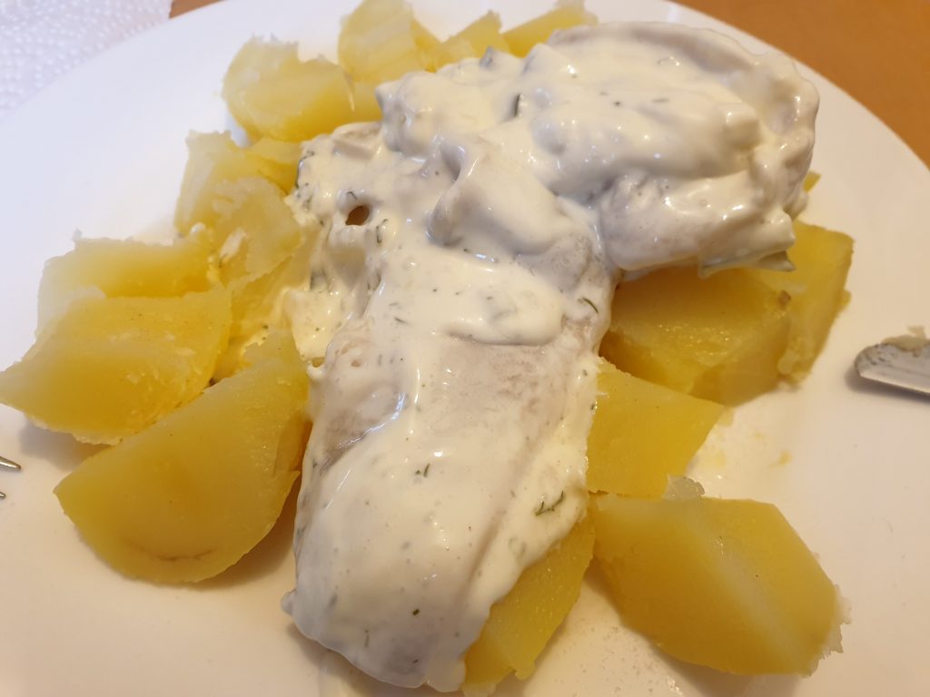 Heute blieb nicht viel Zeit zum kochen. Daher gab es einen pragmatischen Mittelweg. Pellkartoffeln mit Sahnehering. Lecker, lecker….ok Gesund ist was anderes, aber es ist noch überschaubar sündig